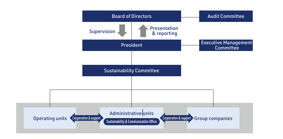 Specifically, the committee shares information relating to sustainability, including ESG, develops basic policies and targets for sustainability management, monitors the implementation status of plans and discusses countermeasures, and has begun discussions on issues such as addressing climate change, sustainability initiatives, and management in response to environmental changes.