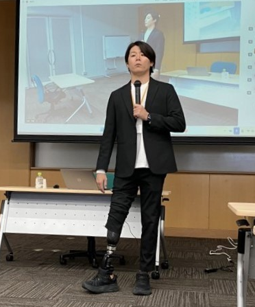 題目の講演と社員向けに義足体験会を開催していただきました。